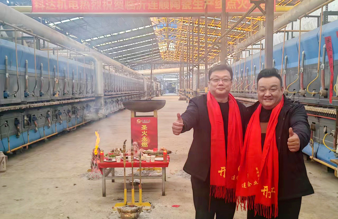 近日,臨沂連順建陶有限公司(以下簡稱“連順陶瓷”)大板生產線成功點火,連順建陶董事長張春曉攜生產經營管理團隊與科達陶機臨沂銷區(qū)總經理喬峰參加了點火儀式。
