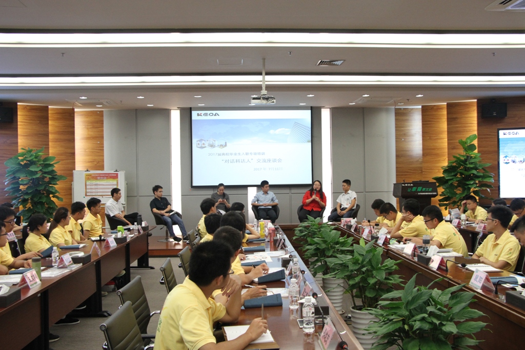 此次公司邀請(qǐng)了配件生產(chǎn)管理部經(jīng)理王慧斌、研發(fā)院務(wù)辦公室主任錢(qián)麗媛、海外事業(yè)部綜合管理副經(jīng)理唐俊亭、安徽人力資源副經(jīng)理丁靂、石材營(yíng)銷(xiāo)中心華南辦事處經(jīng)理章治年,他們中既有1999年入職的“老科達(dá)”,也有2015年才入職的“新科達(dá)”,81位來(lái)自全國(guó)各地的2017年應(yīng)屆畢業(yè)生與5位科達(dá)人親密接觸,展開(kāi)了一場(chǎng)意趣味橫生的對(duì)話。