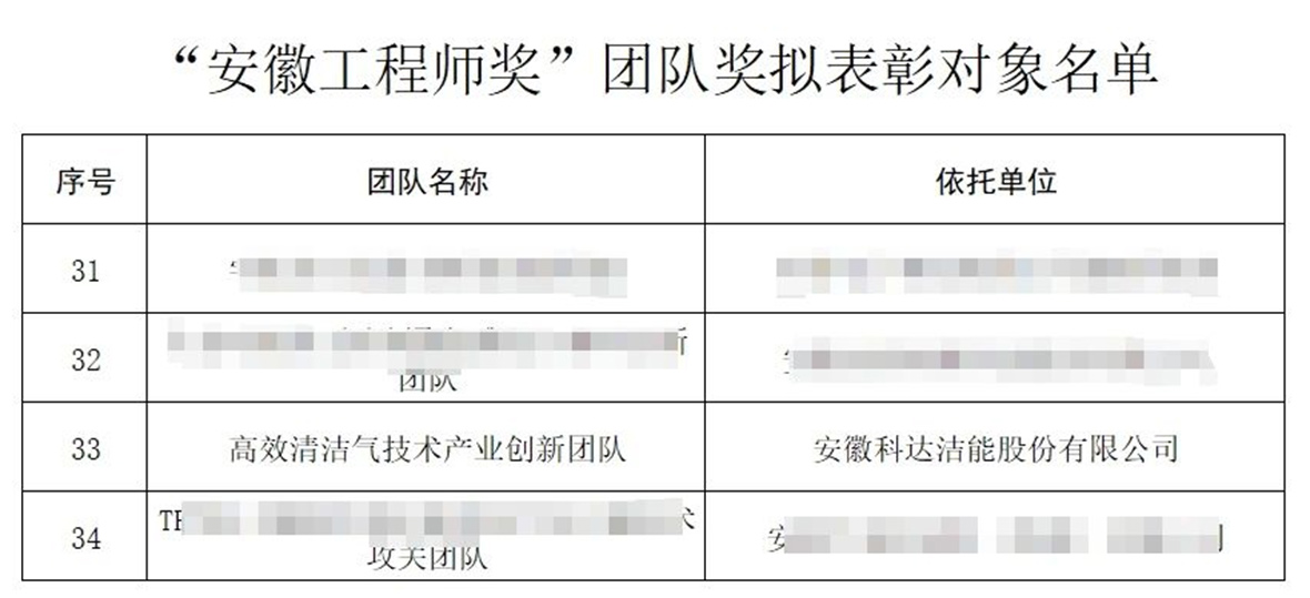 近日,安徽省人力資源和社會保障廳發布了《關于“安徽工程師獎”擬表彰對象的公示》,安徽科達潔能公司“高效清潔氣化技術產業創新團隊”憑借在工程技術領域的突出貢獻,成功入選。