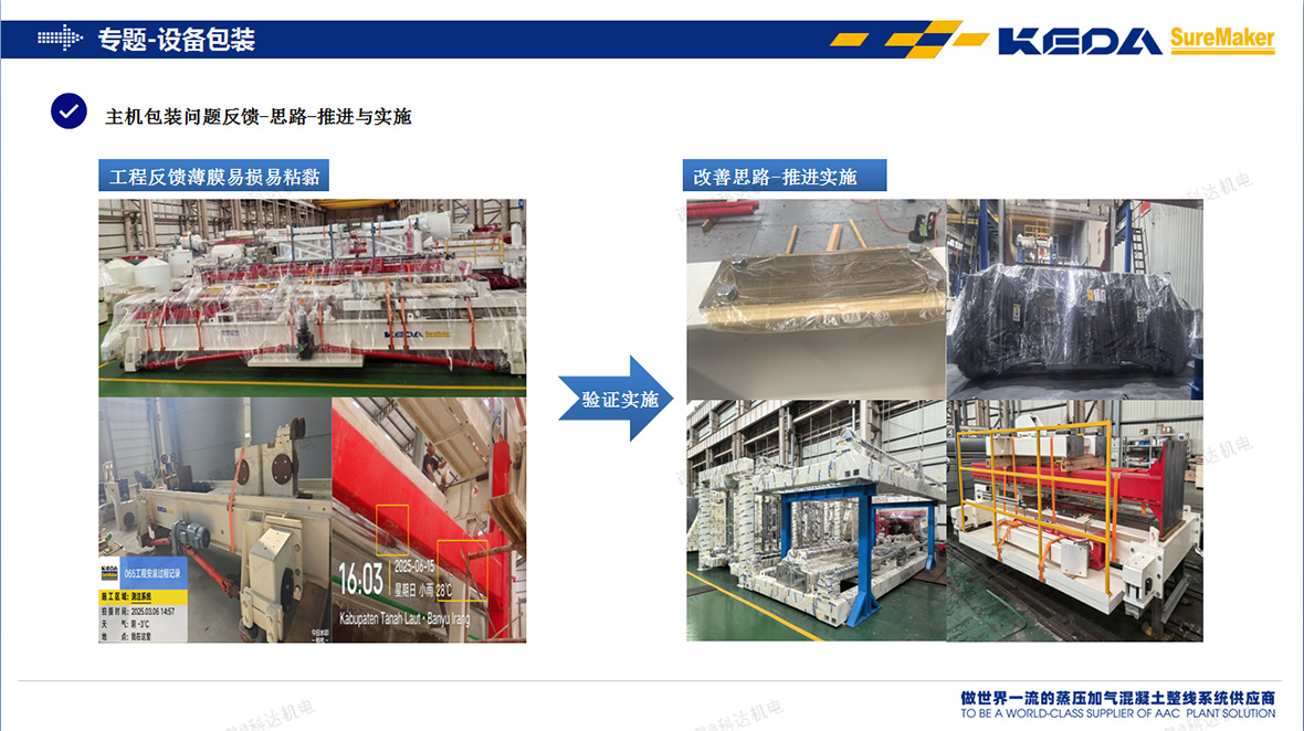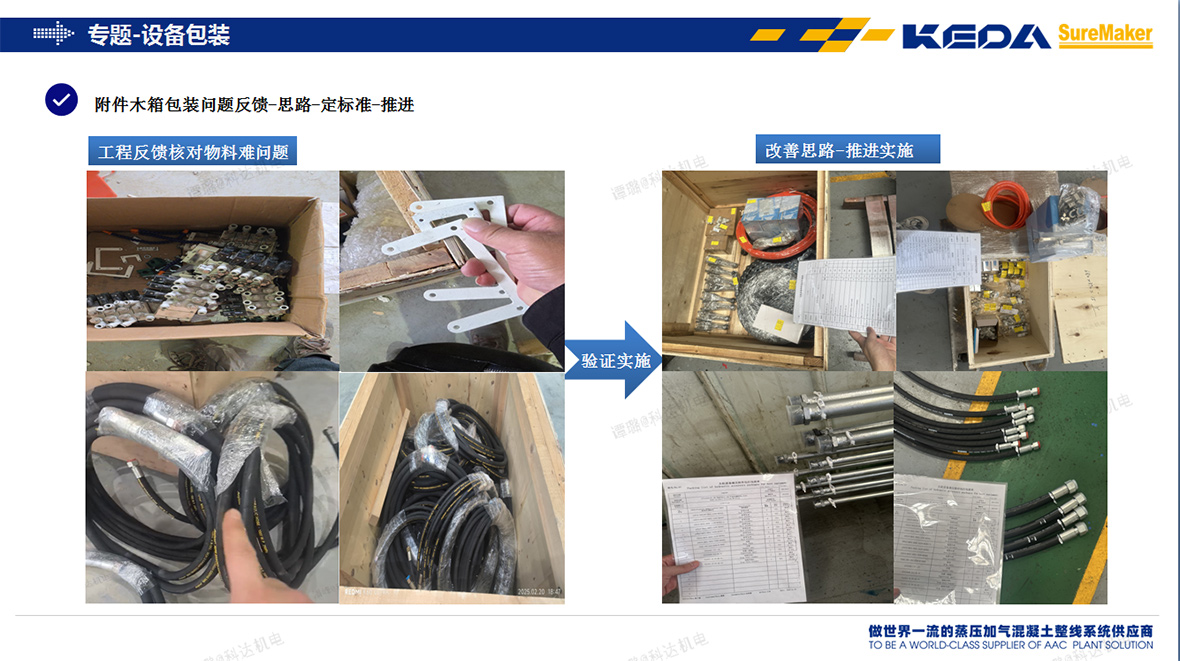 在全球化的浪潮中,海外設(shè)備的發(fā)運(yùn)不僅涉及物流環(huán)節(jié),更是客戶體驗(yàn)與品牌信譽(yù)的關(guān)鍵戰(zhàn)場(chǎng)。為精準(zhǔn)滿足客戶的需求,安徽科達(dá)機(jī)電不斷提升這一關(guān)鍵環(huán)節(jié)的服務(wù)品質(zhì)。為此,在2024年9月,安徽科達(dá)機(jī)電工程供應(yīng)中心成立了“海外打包專項(xiàng)組”,通過在包裝材料、工藝等方面加大投入,定向?qū)嵤└纳坪M獯虬ぷ鞯纳?jí)優(yōu)化,系統(tǒng)性地提高海外打包效率、產(chǎn)品包裝質(zhì)量、裝卸貨方式、裝運(yùn)清單細(xì)化、外觀標(biāo)識(shí)等多個(gè)方面,全面提升海外產(chǎn)品打包發(fā)運(yùn)質(zhì)量的保障。