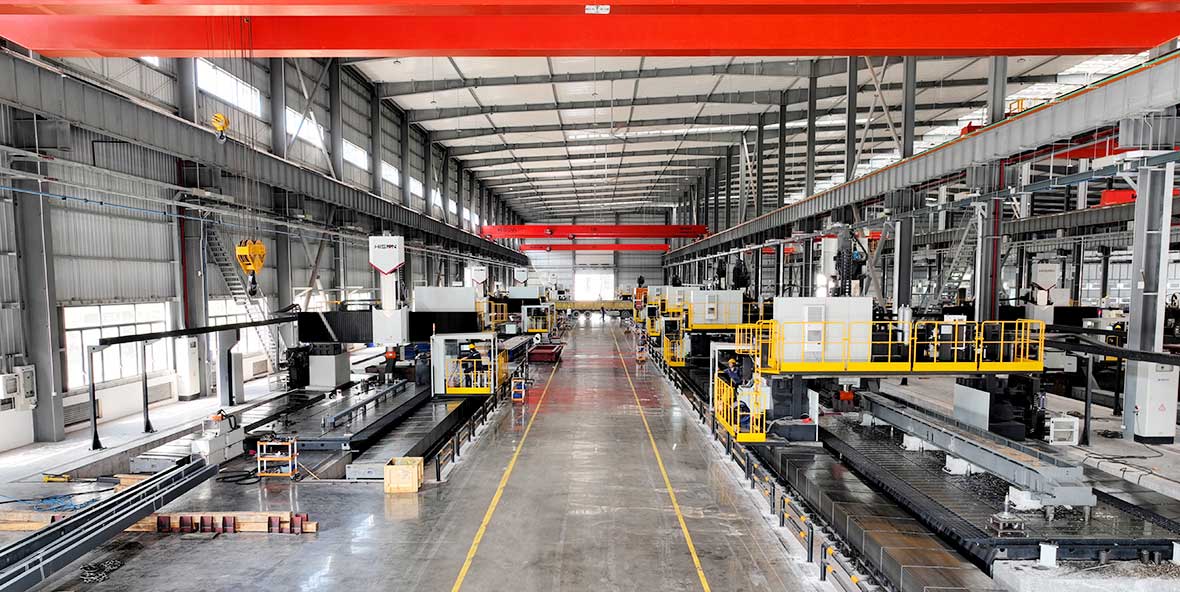 在佛山科達裝備的三號車間,近20臺全新的五面體龍門加工中心形成了華南地區(qū)獨樹一幟的龍門加工集群。其8~18米的超長加工長度、3~4米的加工寬度、約2米的立體加工高度,主要應(yīng)用于機架類、橫梁類的大型結(jié)構(gòu)件,包括大型鑄鍛件的加工。龍門加工中心具有剛性強、功率扭矩大、穩(wěn)定性高的特點,且機床自帶高精度系統(tǒng),加工精度精確到0.01mm,相當于發(fā)絲直徑的1/10。從切削到成型全程穩(wěn)定輸出,確保工件尺寸公差完美達標。