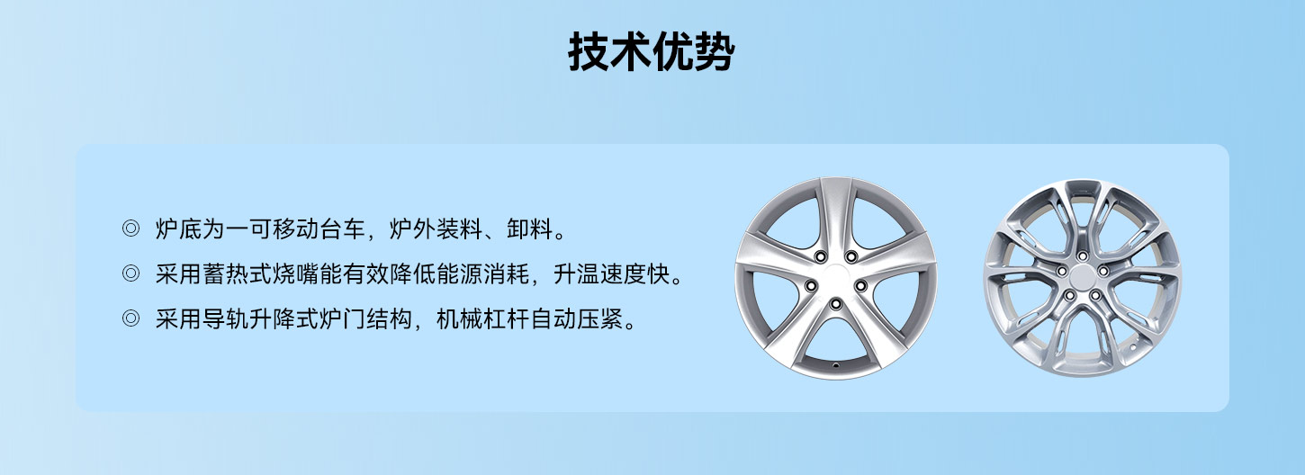 ◎ 爐底為一可移動臺車,爐外裝料、卸料。 ◎ 采用蓄熱式燒嘴能有效降低能源消耗,升溫速度快。 ◎ 采用導(dǎo)軌升降式爐門結(jié)構(gòu),機(jī)械杠桿自動壓緊。