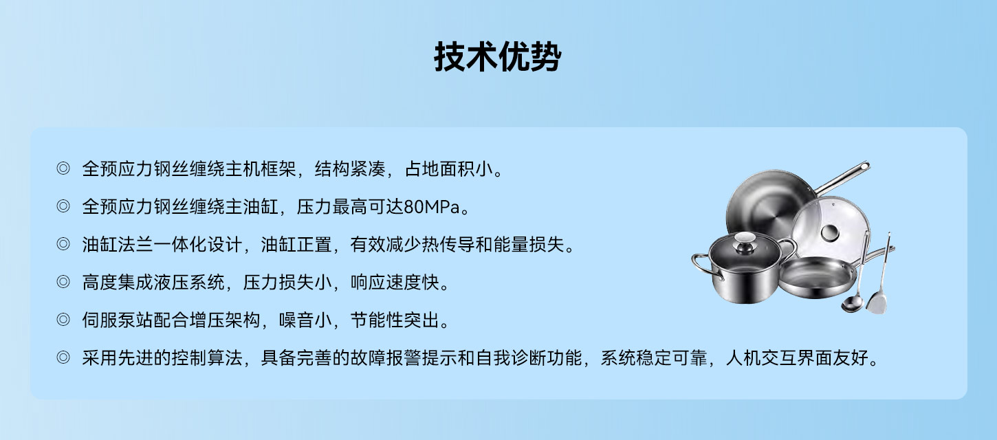 ◎ 全預(yù)應(yīng)力鋼絲纏繞主油缸,壓力最高可達(dá) 80MPa。
