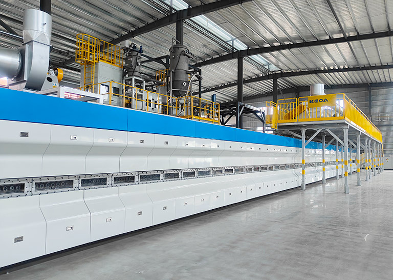 KDN系列輥道窯,耐材合理配置,爐表溫升30~40度;氣密性強,正常生產(chǎn)氧濃度20ppm以下;使用能耗低,能耗比上一代產(chǎn)品降低約30%; 產(chǎn)能大,能耗低,品質(zhì)穩(wěn)定,分體掛板美觀適用,精密輸送,出缽整齊。
