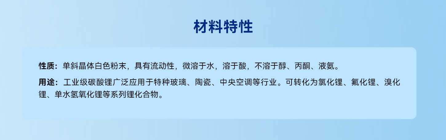 化學式:Li2CO3 分子量:73.89 CAS-No.:554-13-2 密度:2.11g/cm3 熔點:720℃ 沸點:1230℃